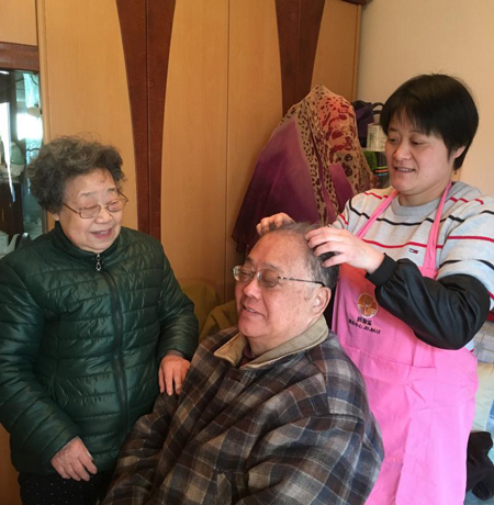 居家樂(lè)養(yǎng)老服務(wù)中心工作人員上門為老人服務(wù)