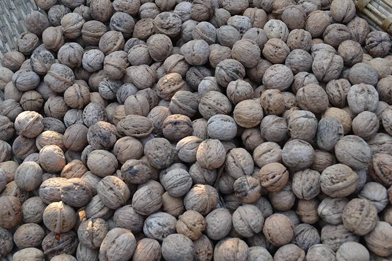 ▲ 今秋,李現(xiàn)法房前屋后100多斤的核桃全部被蘇寧高價(jià)收走,樂(lè)得合不攏嘴