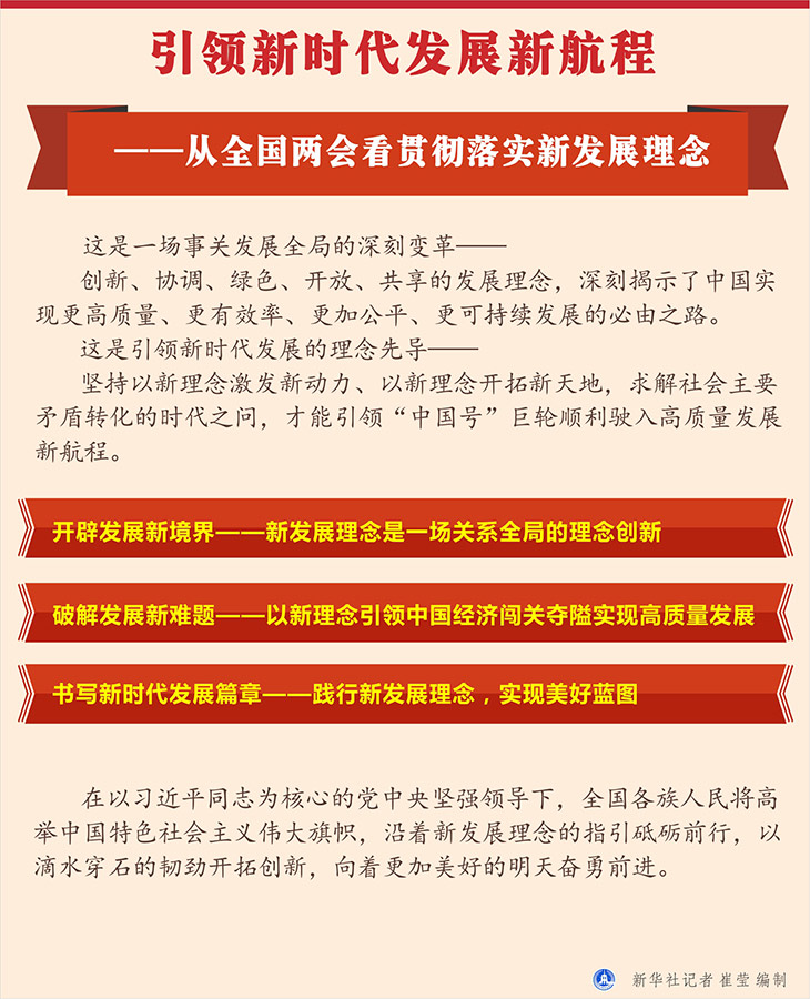 在以習(xí)近平同志為核心的黨中央堅(jiān)強(qiáng)領(lǐng)導(dǎo)下,全國各族人民將高舉中國特色社會(huì)主義偉大旗幟,沿著新發(fā)展理念的指引砥礪前行,以滴水穿石的韌勁開拓創(chuàng)新,向著更加美好的明天奮勇前進(jìn)。(參與采寫:于瑤、岳德亮、馬劍、孟含琪、胡璐、張紫赟、鄔慧穎)