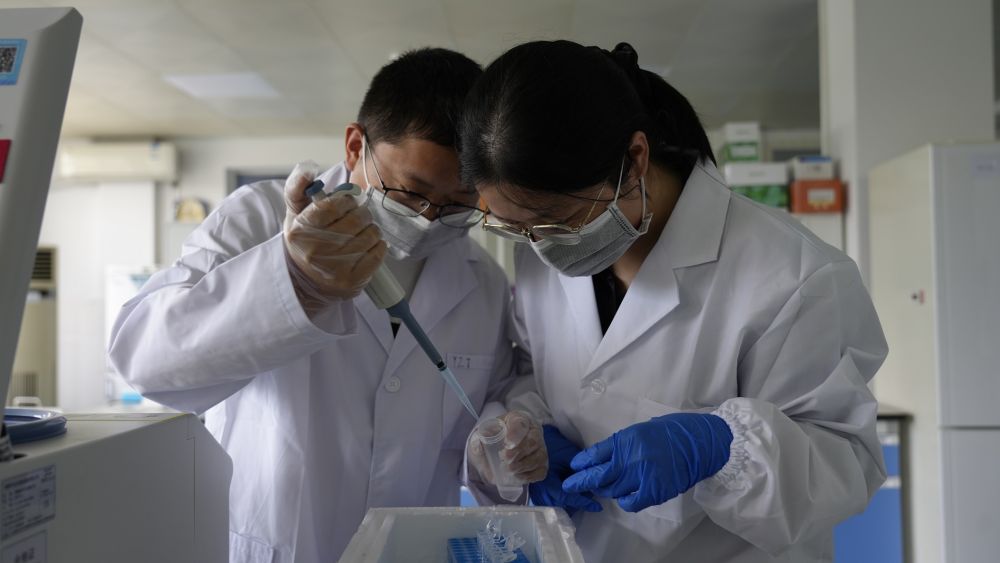 科研人員做實驗(2025年9月5日攝)。